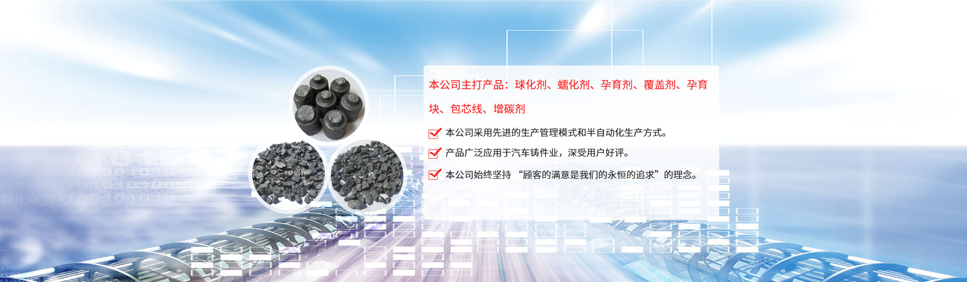 公司引進日本企業的生產管理模式,半自動化生產方式。目前生產能力:球化劑250T/月、孕育劑300T/月、鑄造相關品200T/月。為嚴格控制產品質量,公司采用國內的ICP-AES等離子體發射光譜儀對采購原
